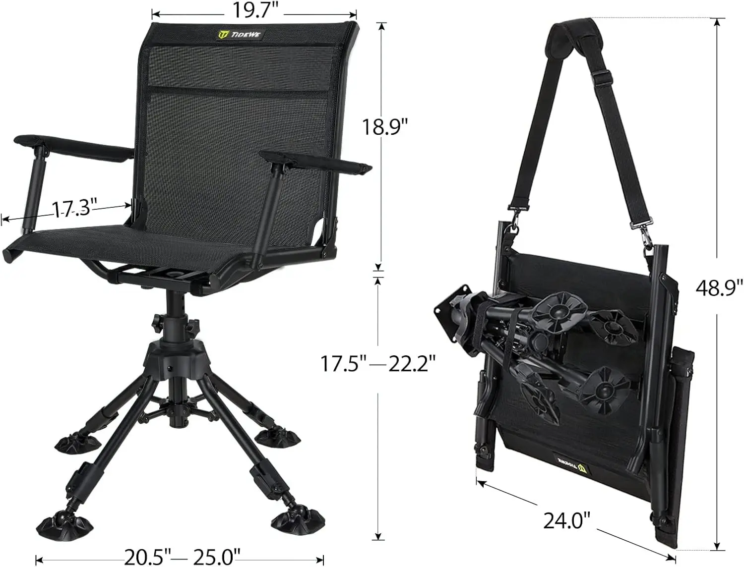 【Comfortable】The seat height can be adjusted from 17.5 inches to 22.2 inches. The silent swivel allows you to turn in any direction quietly inside of your blind. Breathable TechMesh material, as well as the widened backrest keeps you cool and comfortable while hunting.